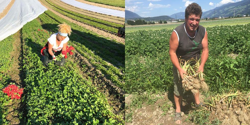 über 60 verschiedene Gemüsesorten (z.B. auch Portulak), Salate, Arzler Sauerkraut ...