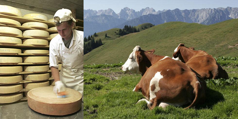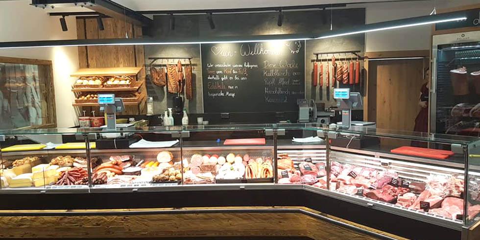 Almkäse, Butter, Naturjoghurt, Frisches Fleisch, Speck und Kaminwurzen, Bauernbrot
